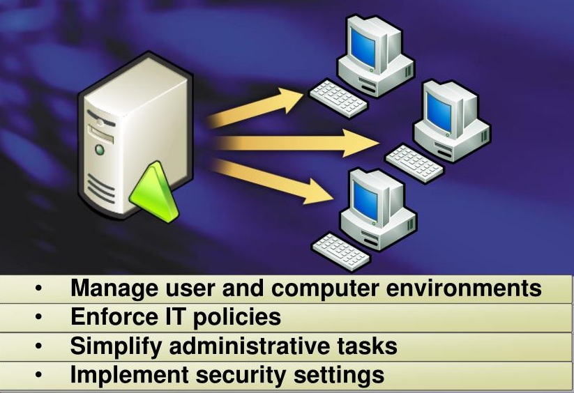 Group Policies are saved as Group Policy Objects (GPOs) which are then associated with Active Directory objects such as sites, domains, or organizational units (OUs). Domain members refresh Group Policy settings every 90 minutes by default (5 minutes for Domain Controllers). Reference here
