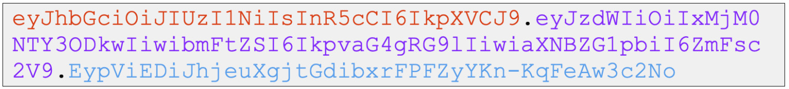 JWT is divided into three parts, separated by dots: header.payload.signature